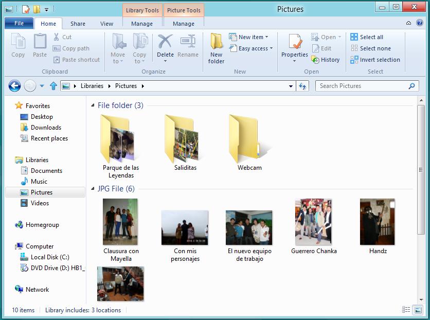 9° Ahora haga doble clic sobre su biblioteca Pictures y observe su contenido.