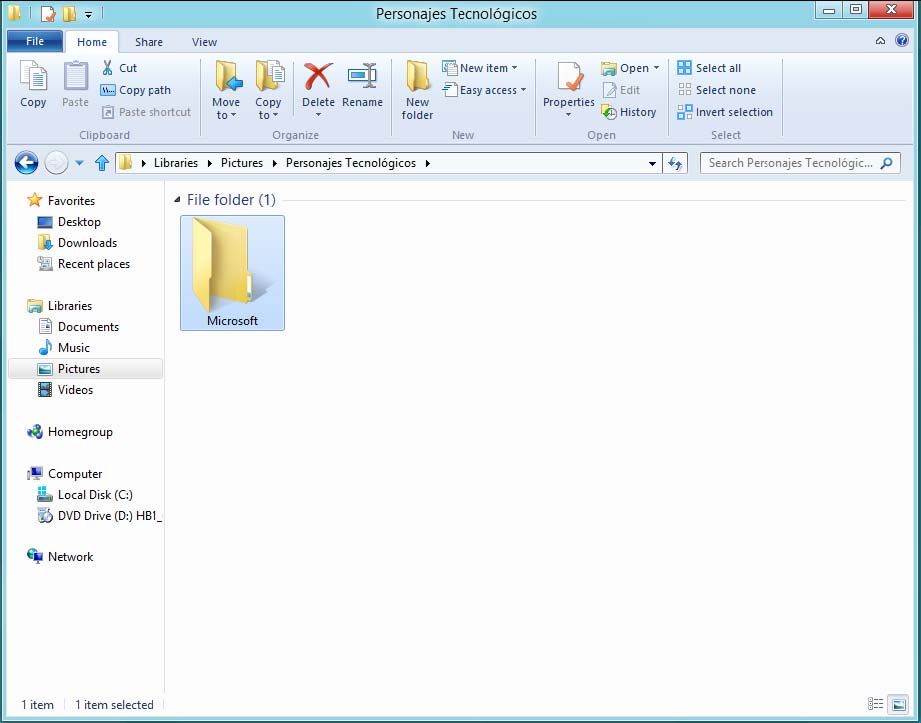 Se acaba de crear una nueva carpeta dentro de la carpeta Personajes Tecnológicos.