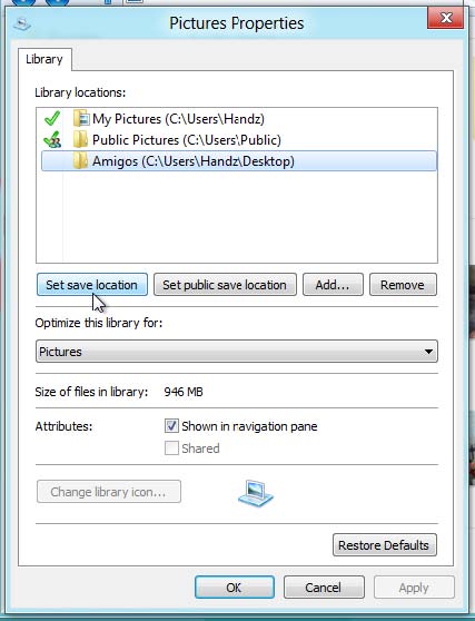 16° En la sección Library locations, haga clic en Amigos y luego clic en el botón Set sabe location y clic en Ok.