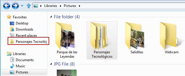 Observe como aparece la carpeta Personajes tecnológicos en el panel de navegación, justo debajo de la sección Favorites.