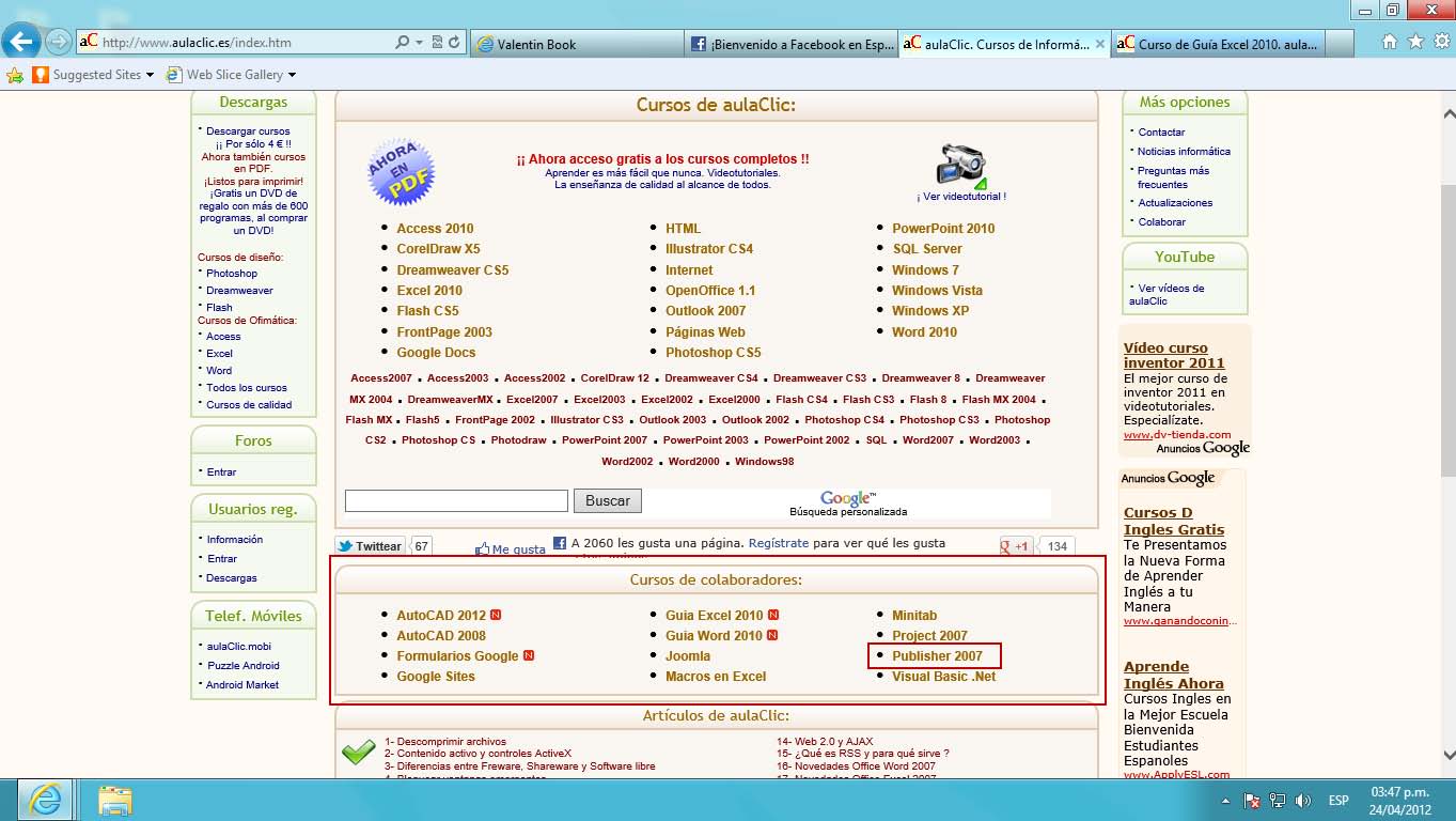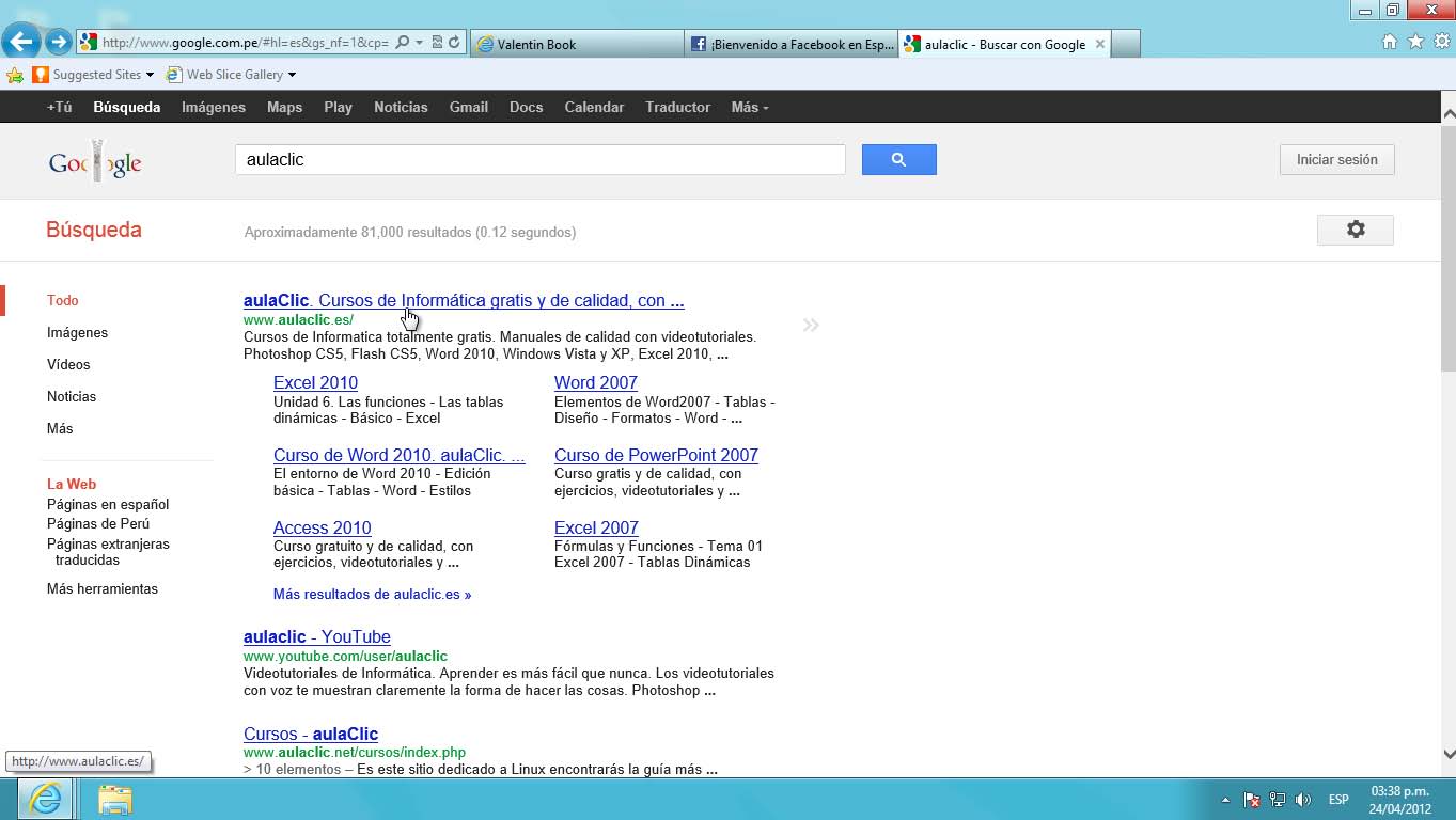Esta página de aulaclic es un curso creado por el autor de este libro para la empresa española Aulaclic. Es posible que este curso sea de su agrado por lo tanto, solo cuando lo necesite, ingresar a este curso de manera más rápida será usando Favoritos.