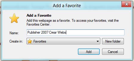 21° EN el cuadro de diálogo Add a favorites, en el cuadro Nombre escriba: Publisher 2007 Crear Webs.