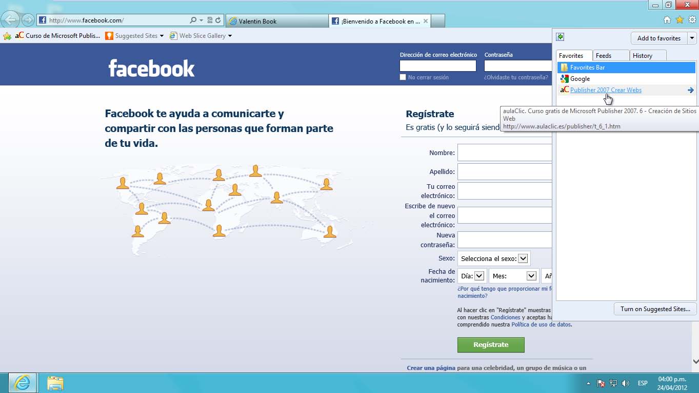 24° Haga clic nuevamente en el comando Favorites y en el panel que aparece, haga clic en Publisher 2007 Crear Webs.