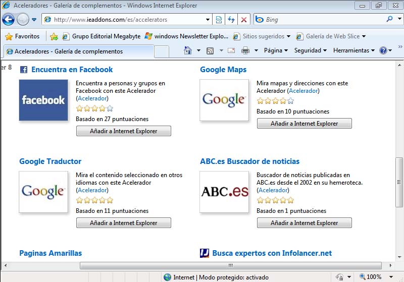 4° Busque el acelerador que necesite y haga clic en Añadir a Internet Explorer.
