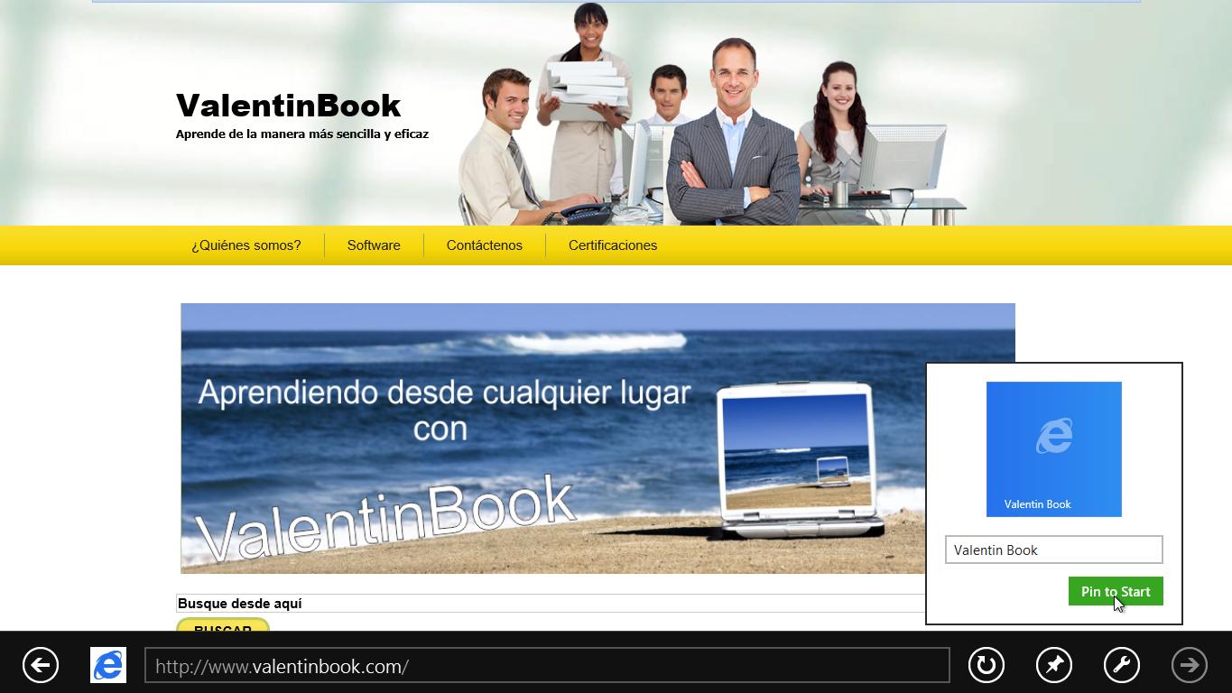 10° Haga clic en Pin to start para anclar ValentinBook con un tile en el Start Screen.