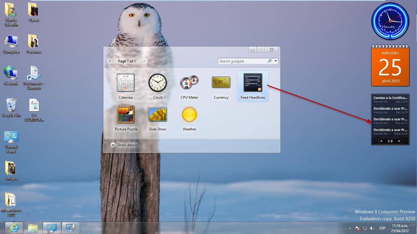 11° Agregue el gadget Feed Headlines.