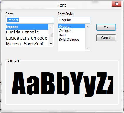 20° Seleccione la Fuente IMPACT y haga clic en OK.