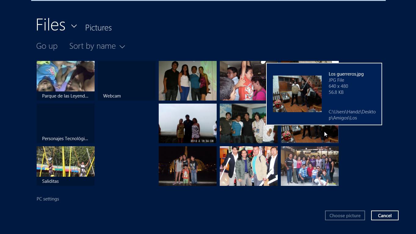 13° Haga clic en Los Guerreros.jpg y haga clic en Choose picture.