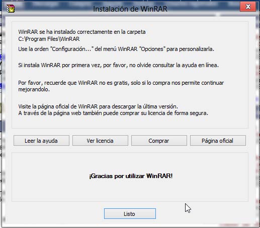 Nota: De seguro que el grupo de directorio de WinRAR se abre y muestra algunos accesos directos del mismo. Cierre la ventana de WinRAR.