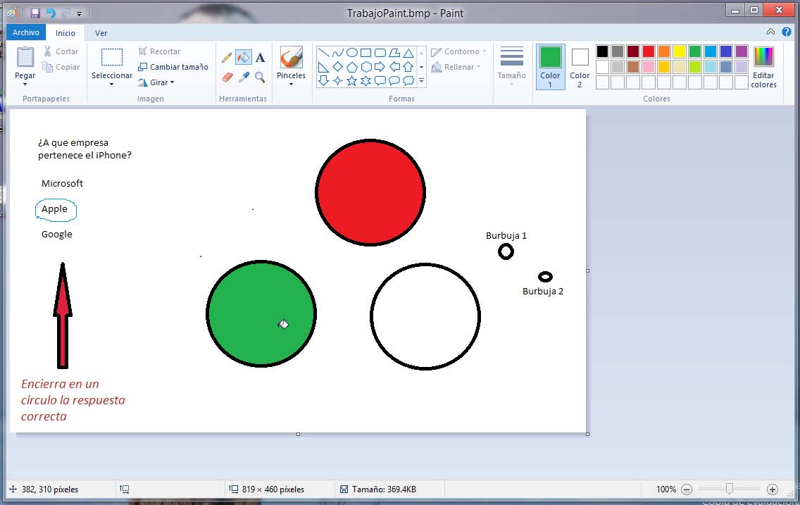 14° Haga clic en el color Verde y luego clic en el primer círculo inferior.