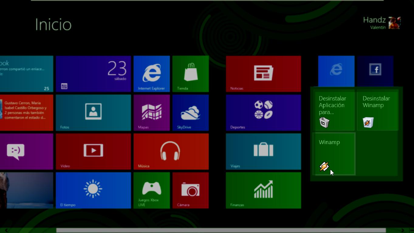 También podrá encontrar un grupo de mosaicos para Winamp en la pantalla Inicio.