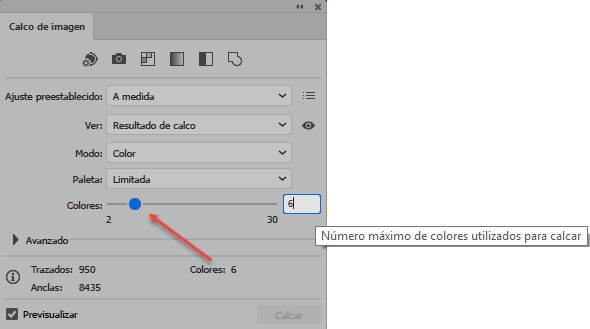 En el panel podemos reducir los colores desplazando el control correspondiente.