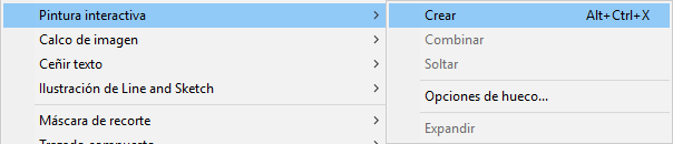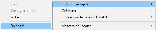 , debemos crear un conjunto de pintura interactiva. Para ello, lo primero que debemos hacer es expandir el calco de imagen usando el menú Objeto → Calco de imagen → Expandir. Inmediatamente después utilizamos la opción de menú Objeto → Pintura interactiva → Crear.