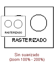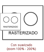 - Suavizar. Suaviza los bordes para reducir el efecto dentado, pero que también le resta nitidez, lo que puede ser contraproducente en trazos finos.