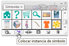 Para agregar una instancia de símbolo al documento, basta con seleccionarlo del panel Símbolos y pulsar el botón Colocar instancia de símbolo de la parte inferior.