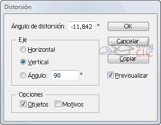 Para ello sólo hemos de especificar el Punto de referencia e introducir un valor para el Ángulo de distorsión.