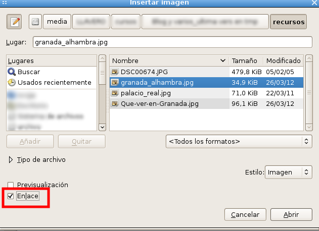 para introducir la imagen como un vínculo, en lugar de incrustarla en el