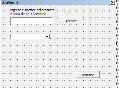 Al ejecutar el formulario, cada vez que ingresa un nombre o texto, debe hace clic en <Aceptar>. En cualquier momento puede desplegar la lista en el cuadro combinado para ver los elementos que se van añadiendo. Para terminar debe hacer clic en <Terminar>.