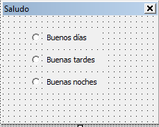 En este ejemplo ingresaremos tres botones de opción. Al hacer clic en cada uno de ellos, se debe emitir un mensaje. La siguiente imagen es una muestra de este formulario: