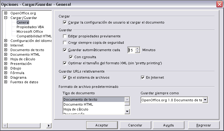 Pasos a seguir: Despliega el menú Herramientas y selecciona la opción Opciones. Haz clic sobre Cargar/Guardar de la ventana Opciones.