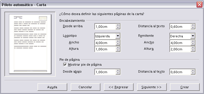 | En la siguiente pantalla indicamos la organización global de la carta, el encabezado, el logotipo y el pie de página. Indicando los márgenes y la distancia del texto con respecto a estos elementos. |