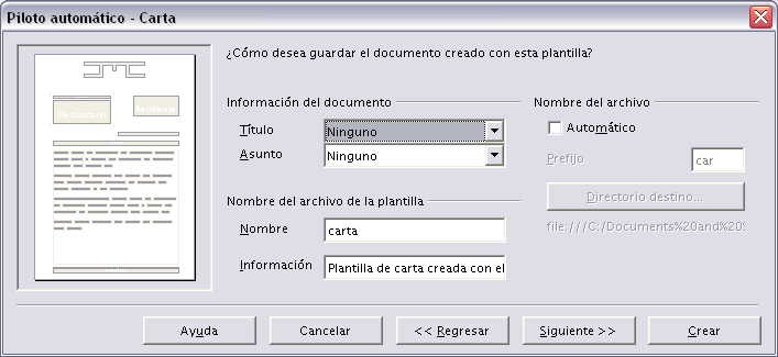 En la siguiente pantalla completamos la información con la que el documento creado con la plantilla se almacenará. |