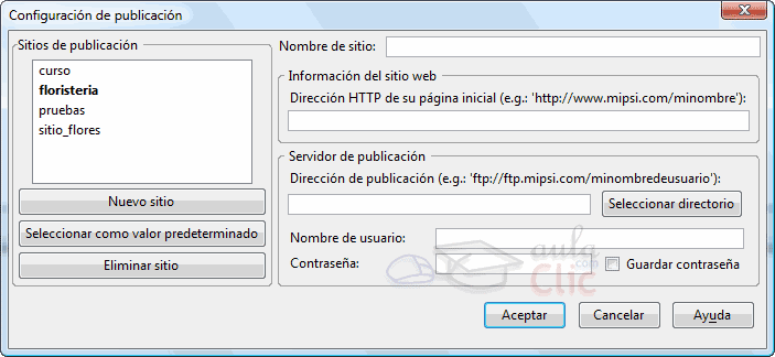 Pero lo primero será crear un sitio. Para crear o editar un sitio, pulsamos en el icono