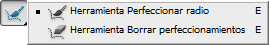Es común que haya parte de la imagen fuera de este radio, por ejemplo un mechón de pelo. Para añadirlo al radio, en el diálogo encontramos la herramienta Perfeccionar radio, similar al Pincel. Con ella, pintamos las zonas que queramos perfeccionar y que hayan quedado fuera del radio.