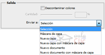 Por defecto, en Enviar a tiene seleccionado Selección, por lo que simplemente se creará una nueva selección sobre la capa. El resto de opciones envía el contenido de la selección a nuevas capas o documentos, pero siempre sin alterar la capa original.