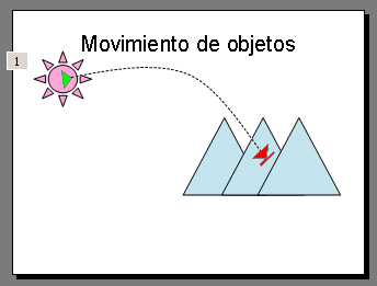 Apartado 1. 1) Crea primero el sol (Autoformas). 2) Después crea las montañas que son tres triángulos (crea primero uno y después duplícalo 2 veces) 3) Mueve los triángulos hasta situarlos de la manera que aparecen las montañas. Apartado 2. 1) Selecciona el sol y despliega el menú Presentación, elige Personalizar animación. 2) Despliega la lista de Agregar efecto y elige la opción Trayectorias de desplazamiento, 3) Después Dibujar desplazamiento personalizado 4) y por último Curva. 5) Dibuja la curva haciendo clic primero en el sol, después a la altura del punto de inflexión de la trayectoria, después en la segunda montaña haces doble clic para terminar de definir la trayectoria.