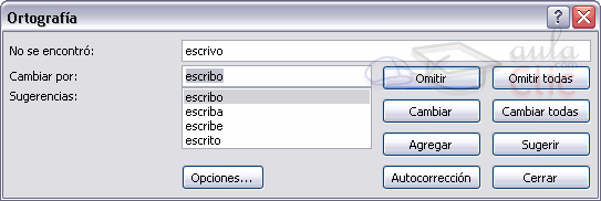 Cuando hayas seleccionado Ortografía aparecerá una ventana como la que te mostramos a continuación.