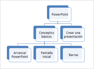 11 Escribe en los cuadros creados su contenido (Arrancar PowerPoint, Pantalla Inicial, Barras)