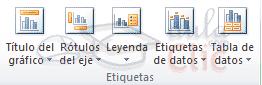 Poder ocultar o mostrar etiquetas del gráfico como por ejemplo la leyenda, el título, los rótulos de los ejes, etc. Lo haremos desde el grupo Etiquetas: