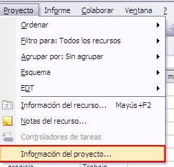 1. Ir al menú Proyecto → Información del proyecto…
