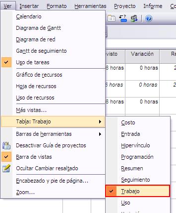 Para ello debemos ir a la vista Uso de tarea y abrir la tabla Trabajo