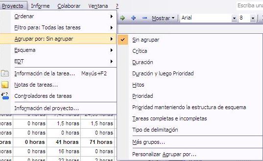 Por último, podemos ver los datos agrupados por ciertos criterios. Para ello debemos elegir una opción desde el menú Proyecto → Agrupar por: