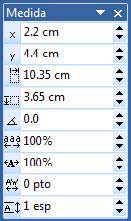 7° Pulse clic en la página 3. 8° Inserte un cuadro de texto del tamaño que quiera. 9° En la barra de estado de Publisher (al lado del clasificador de páginas), pulse doble clic. Aparece la Barra de herramientas Medidas. 10° Cambie a las siguientes medias.