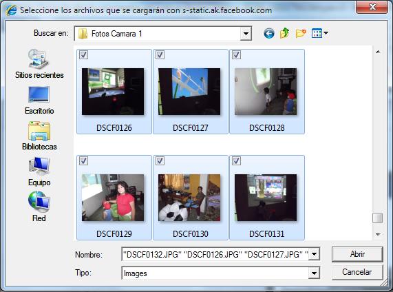 4° En el cuadro de diálogo seleccione las imágenes que formarán parte de su nuevo álbum, y luego haga clic en Abrir.