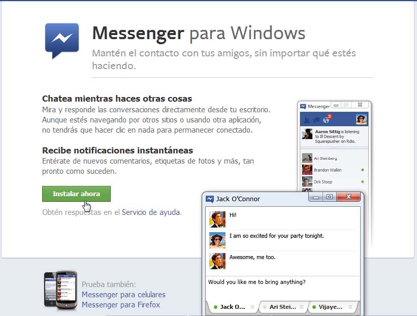 3° En la página de Messenger para Windows, haga clic en Instalar ahora.