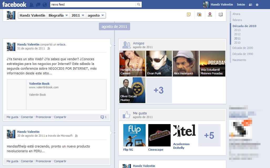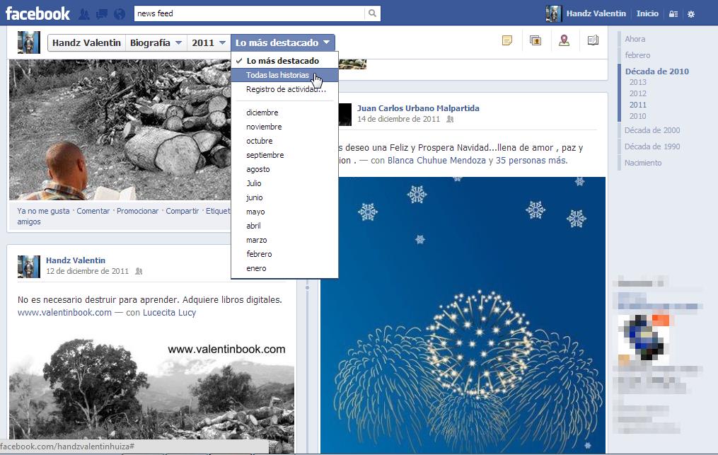 Facebook ahora muestra con una pequeña etiqueta azul el inicio de la sección 2011. Por lo general Facebook muestra las publicaciones más destacadas.