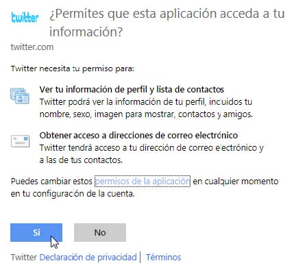 4° Ahora Twitter te informará que podrá utilizar cierta información para que puedas utilizar la función de buscar amigos desde tu correo electrónico. Como Twitter es seguro, haga clic en Sí.