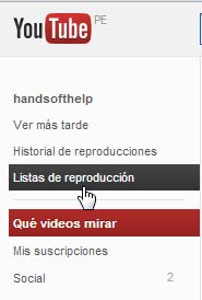 1° En su página principal de YouTube, a la izquierda, haga clic en Listas de reproducción.