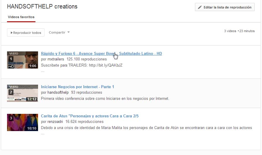 2° En la sección de listas de reproducción, haga clic en una de sus listas, en mi caso haré clic en Videos favoritos.