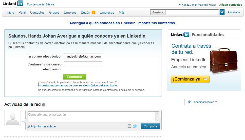 Listo, en buena hora, ya estás en LinkedIn y podrás disfrutar de la conexión con personas que comparten los mismos intereses profesionales.