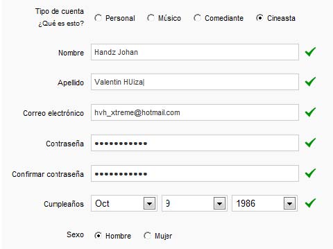 9° En el campo Sexo, seleccione entre Hombre o Mujer (como siempre digo, el que más le convenga).
