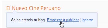 8° Ahora que está creado el blog, haga clic en el enlace Empezar a publicar si necesita trabajar ahora mismo.