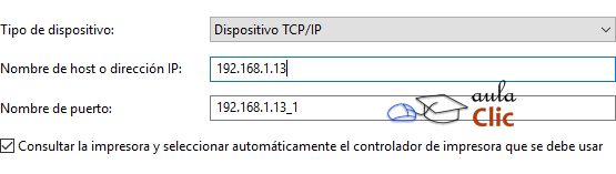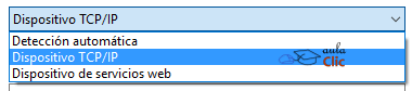 3. De la lista desplegable seleccionamos Dispositivo TCP/IP.