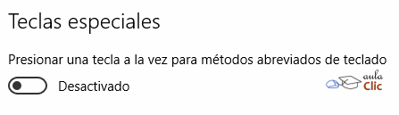 En otros casos, hay quien sí puede utilizar un teclado físico, pero no puede pulsar las teclas de métodos abreviados simultáneamente, debe poder hacerlo consecutivamente. En dicho caso se puede activar el uso de teclas especiales, entre otras muchas posibilidades.