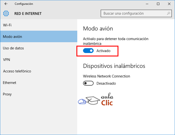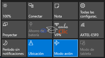 El Modo avión es un concepto recurrente en dispositivos móviles. Como se sabe, un protocolo de seguridad mundialmente utilizado es desactivar las comunicaciones inalámbricas de cualquier dispositivo cuando los aviones aterrizan y/o despegan para evitar que éstas interfieran con sus sistemas de navegación y de ese modo evitar accidentes. Por ello, en un principio, se les solicitaba a los pasajeros apagar sus dispositivos para evitar esas comunicaciones, hasta que en ellos fue incorporado el llamado Modo avión, para que no sea necesario apagarlos. En Windows 10 podemos poner nuestro dispositivo en Modo avión de dos modos: pulsando un botón en el Centro de actividades, lo que apagará la conexión inalámbrica.