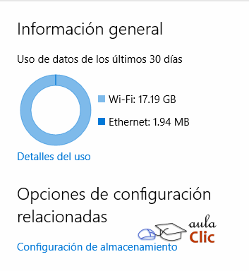 Por su parte, la categoría Uso de datos nos brindará estadísticas de los datos que hemos recibido y enviado en los últimos 30 días. Estas estadísticas se muestran para conexiones cableadas (por el puerto Ethernet al que nos referiremos más adelante) y para las conexiones inalámbricas Wi-Fi que vimos en el apartado anterior. La opción Detalles de uso, simplemente muestra una lista de las aplicaciones que más datos han intercambiado por estas vías. Nuestro navegador predeterminado de Internet suele estar en primer lugar en esa lista.